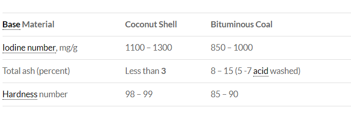Coconut Activated Carbon Hardness Number is around 98 but Bituminous Coal Activated carbons hardness number is only 85 – 90.