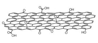 GO’s molecular structure is shown above. The functional groups are present on the edges of the flakes and on the top and bottom which helps impart GO with legendary solubility compared to most nanoscale particles. No surfactants are needed when dispersing into typical solvents such as Di Water, NMP, DMF, THF, DCB, or Ethanol.