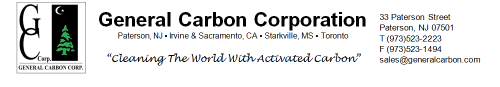 General Carbon Corp. inventories several lines of activated carbon and filtration equipment for both air and water applications. Custom manufacturer of activated carbon, filters and filter media. Types of filters include activated carbon, air, carbon removal, cartridge, charcoal, heavy metal removal, industrial, liquid or air sterilizing, taste and odor removal, oil, panel, particulate, drinking and industrial water and wine and spirit filters.